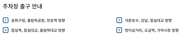 주차장 주소는 서울시 송파구 올림픽로 300(신천동 29)를 찍고 오시면 됩니다. 더 세부적인 주차정보는 아래 링크를 클릭하여 참고해주세요.