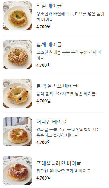 베이글 종류가 정말 다양하네요. 이거 다 맛보려면 여러번 방문해야 할 것 같습니다.