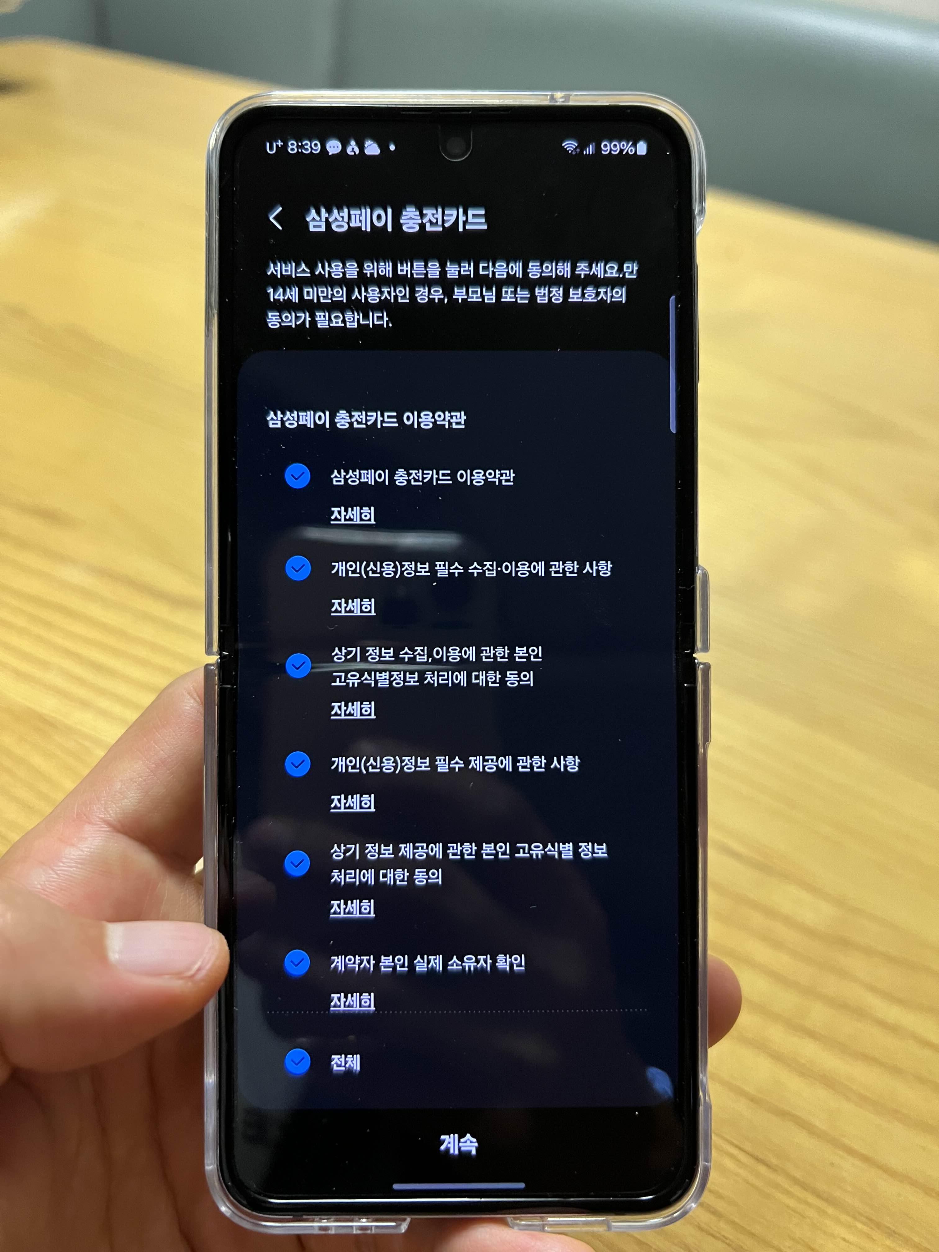삼성페이 충전카드 설명을 확인 후 '다음'을 눌러줍니다.